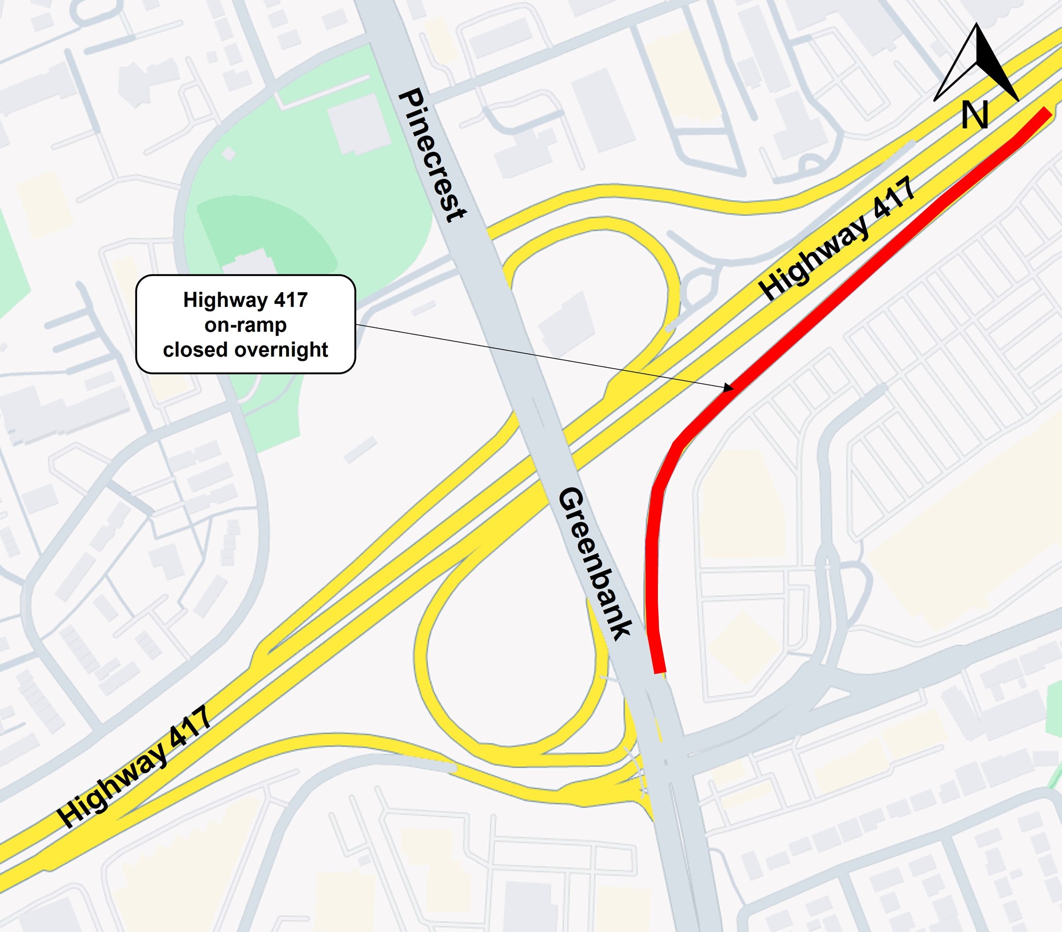 Highway 417 Eastbound On-Ramp from Northbound Greenbank Road - Overnight Closure
