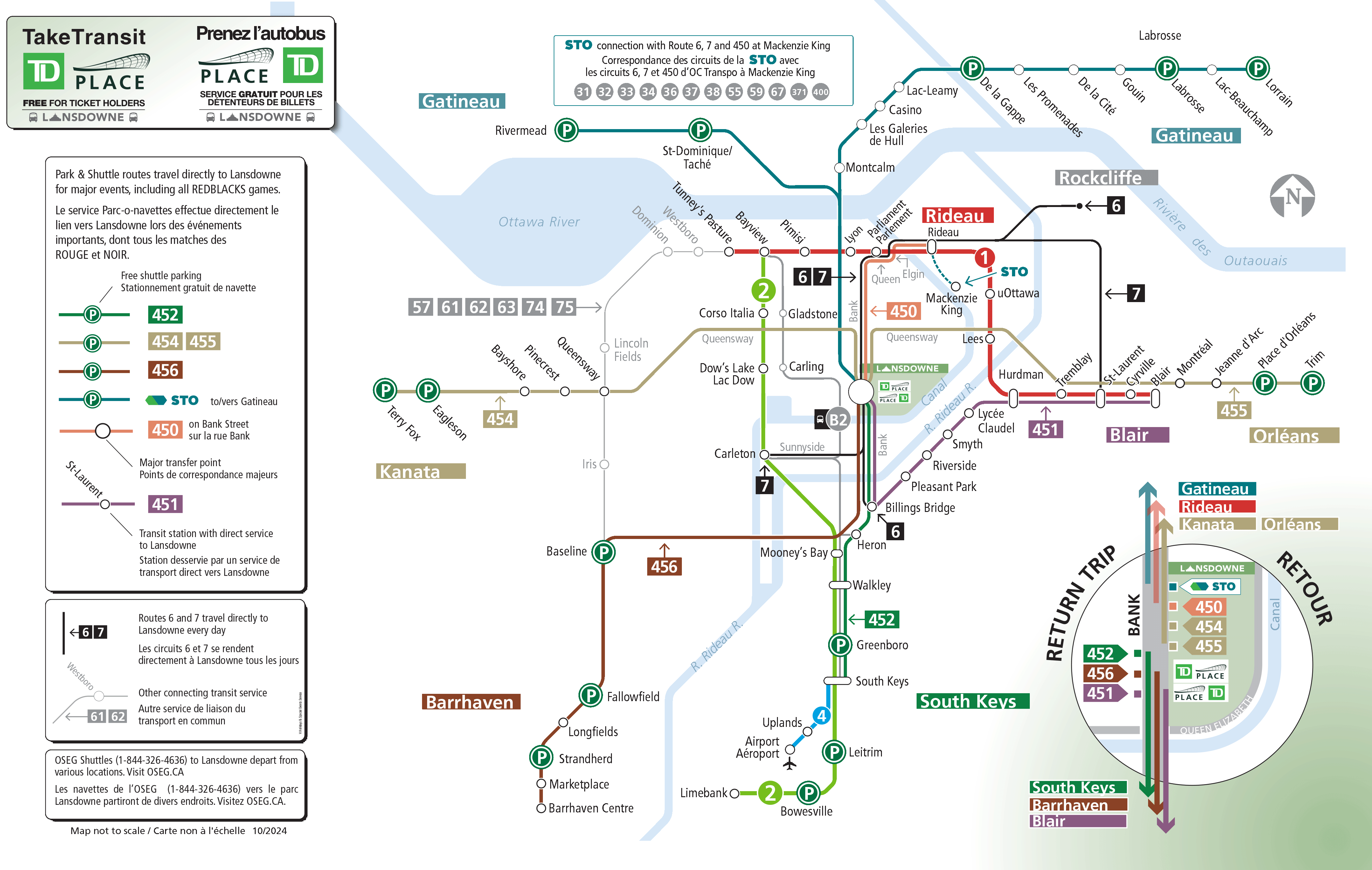 After the event, catch Route 455 on Bank Street. Buses will wait until they have a full load of passengers before departing. No need to rush, the last trip on route 455 will leave 90 minutes after the end of the event. If you need to leave the event early, Routes 6 and 7 serve Lansdowne along Bank all day long.