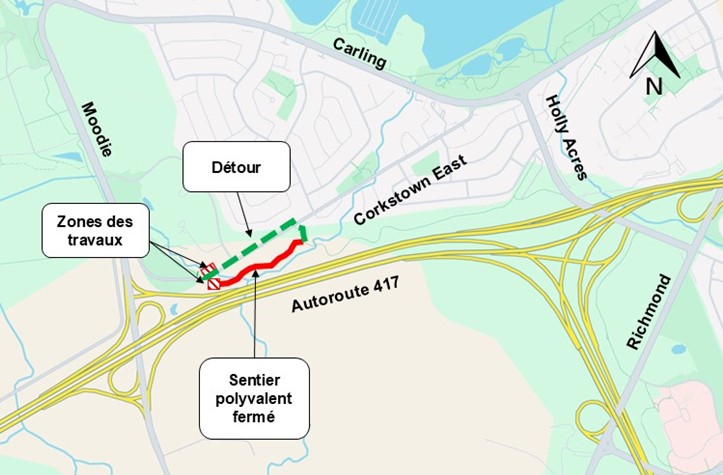 Fermeture à long terme de sections du sentier polyvalent à l’est de la promenade Moodie sur le chemin Corkstown Est.